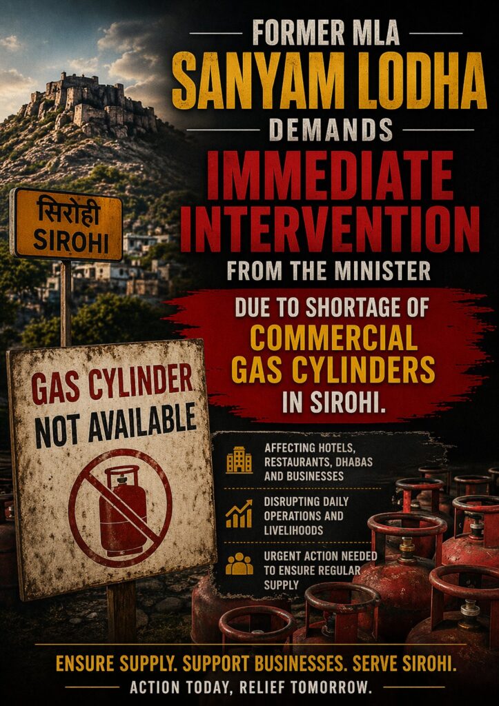 सिरोही। जिले में कॉमर्शियल गैस सिलेंडरों की लगातार बनी हुई किल्लत अब एक गंभीर जनसमस्या का रूप लेती जा रही है। इस मुद्दे को लेकर पूर्व विधायक संयम लोढ़ा ने खाद्य एवं नागरिक आपूर्ति मंत्री सुमित गोदारा से सीधे फोन पर बात कर स्थिति से अवगत कराया और तत्काल समाधान की मांग की। लोढ़ा ने मंत्री का ध्यान विशेष रूप से ग्रामीण क्षेत्रों की ओर आकर्षित करते हुए बताया कि वहां कॉमर्शियल गैस सिलेंडरों की भारी कमी के कारण शादी-विवाह और धार्मिक समारोहों के आयोजन में बाधाएं उत्पन्न हो रही हैं। उन्होंने कहा कि इस तरह के सामाजिक और पारिवारिक आयोजनों में गैस की उपलब्धता बेहद जरूरी होती है, लेकिन वर्तमान स्थिति में लोगों को काफी परेशानियों का सामना करना पड़ रहा है। मंत्री को भेजे गए पत्र में संयम लोढ़ा ने विस्तार से बताया कि सिरोही जिले की ग्रामीण गैस एजेंसियों को कॉमर्शियल सिलेंडरों की आपूर्ति अनियमित रूप से हो रही है। कई एजेंसियों को पर्याप्त मात्रा में सिलेंडर नहीं मिल पा रहे हैं, जिससे मांग और आपूर्ति के बीच बड़ा अंतर पैदा हो गया है। इसका सीधा असर आमजन पर पड़ रहा है, खासकर उन परिवारों पर जिनके यहां विवाह या अन्य धार्मिक कार्यक्रम आयोजित होने वाले हैं। उन्होंने यह भी बताया कि कई जगहों पर लोगों को समय पर सिलेंडर नहीं मिलने के कारण वैकल्पिक व्यवस्थाएं करनी पड़ रही हैं, जिससे अतिरिक्त आर्थिक बोझ भी बढ़ रहा है।
