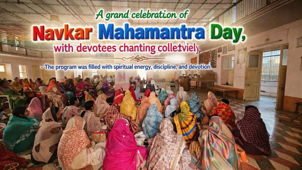 सिरोही। उपाश्रय हॉल में नवकार महामंत्र दिवस का भव्य आयोजन श्रद्धा और आस्था के साथ संपन्न हुआ। इस पावन अवसर पर जैन समाज के श्रद्धालुओं ने सामूहिक रूप से नवकार महामंत्र का जाप कर वातावरण को आध्यात्मिक ऊर्जा से भर दिया। कार्यक्रम का मुख्य उद्देश्य विश्व शांति, सुख-समृद्धि तथा समस्त प्राणियों के कष्टों के निवारण की कामना करना रहा। पूरे आयोजन के दौरान भक्ति, अनुशासन और सकारात्मक ऊर्जा का अद्भुत संगम देखने को मिला।